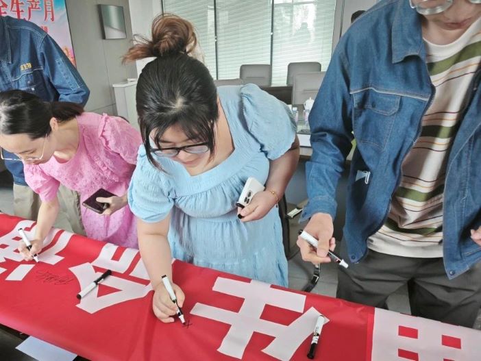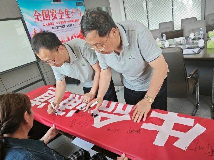 当每一位员工在写着“人人讲安全、个个会应急——畅通生命通道”的横幅上签下自己名字的那一刻,就已经许下了安全的承诺。那不仅仅是一个签名,更是一份责任,是对自己、对家庭、对企业责任。这一个承诺,关系着自己的生命和健康,关系到家庭和谐幸福,关系到企业未来发展的安全之基。只有在工作和生活中严格遵守安全规定,采取正确的行动来避免危险,保障自己不受伤害,才能守护自己、家庭和企业的美好未来。
